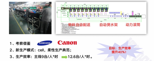 生產模式仿照精益短線,單人設備投入稍高正常生產線,單人效率較正常生產線高20%以上;