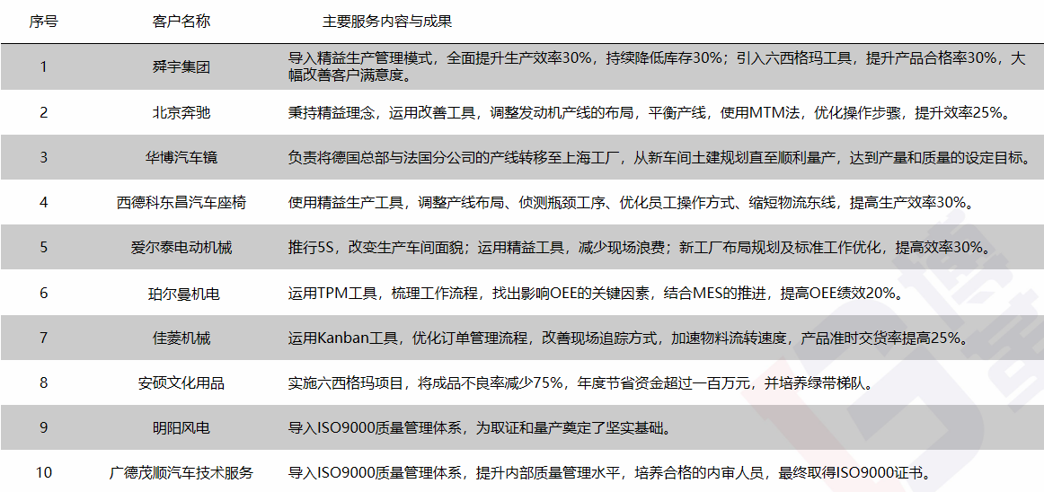 主要咨詢服務項目成就