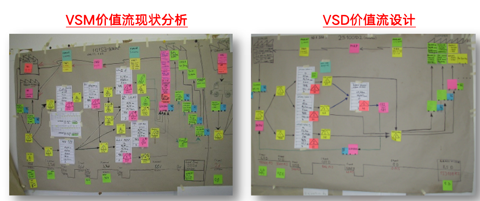 全局化了解工廠生產系統(tǒng)各環(huán)節(jié)的關系,評估信息流動和產品流動的狀況。通過價值流圖,顯示過程中非增值活動的主要問題點,暴露浪費的根源,從而進行改善舉措規(guī)劃,統(tǒng)一工作重點。
