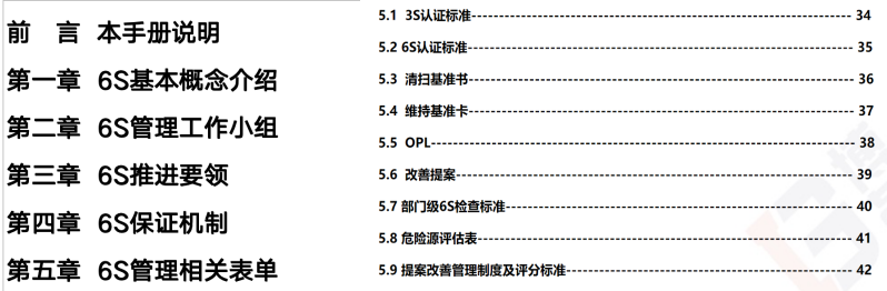 為打造標準化工廠,推動精益生產,全員改善,需從6S項目開始,通過精益顧問的培訓輔導和檢查,推進了公司內6S組織及職責建設,打造并推廣了樣板車間,完成了單點教材OPL,設備六源分析和改善,建立了設備清掃基準書及維持基準卡,建立了6S周會及早會制度,完善了6S相關制度及手冊。